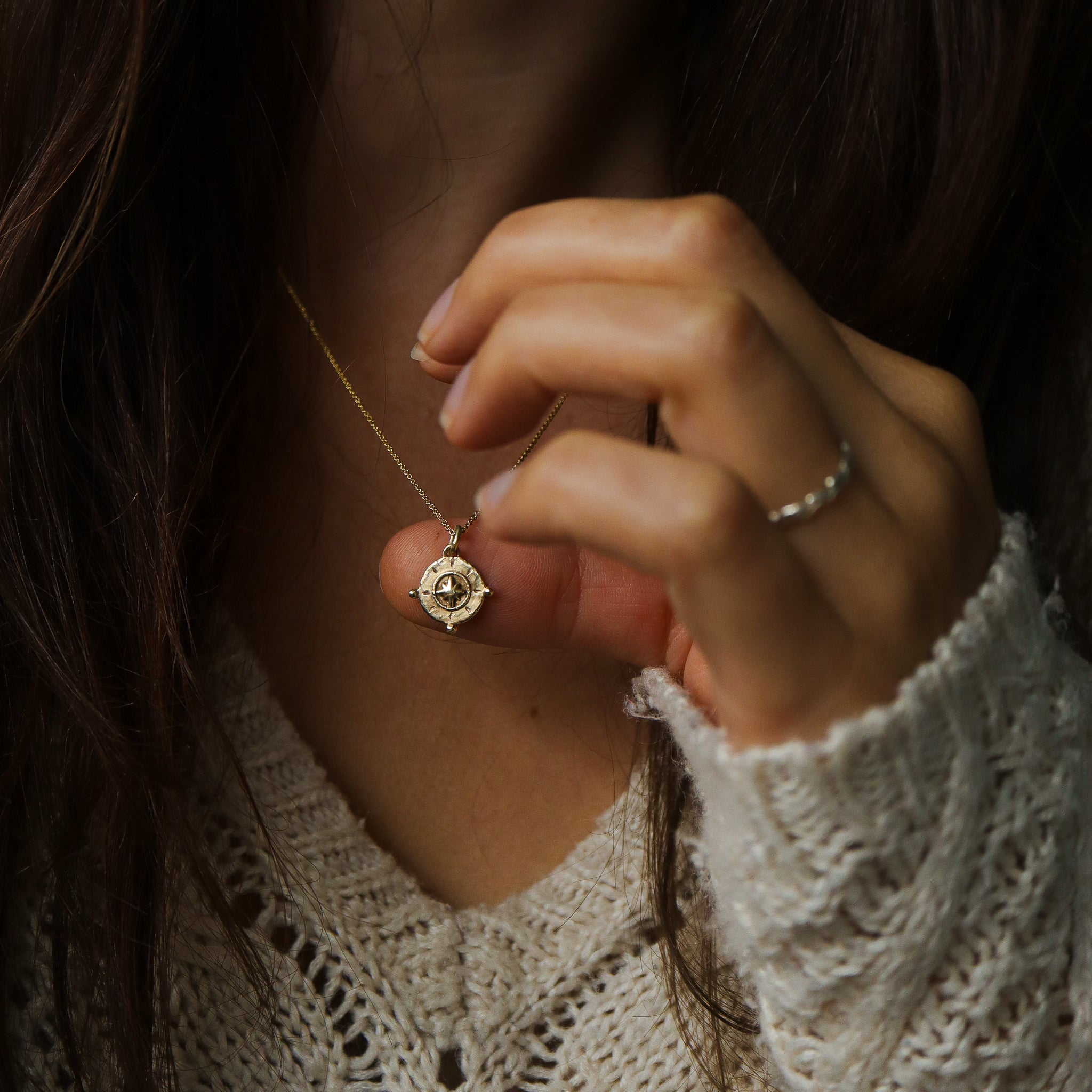 Dieser Kompass-Anhänger wird mit Liebe zum Detail aus hochwertigen Materialien gefertigt. Ich lege großen Wert auf Nachhaltigkeit und verwende ausschließlich recycelte Edelmetalle, die aus zertifizierten konfliktfreien Quellen stammen. So kannst du sicher gehen, dass dein Schmuckstück nicht nur wunderschön ist, sondern bei der Herstellung auch die Natur respektiert wird. Mehr dazu findest du hier.