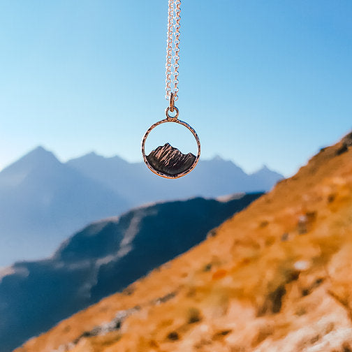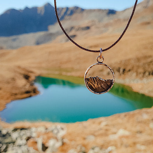 Mit diesem handgefertigten Berganhänger, tauchst du ein in eine Wellt voller schroffer Felsen und steilen Gipfeln und bringst so einen Hauch von Abenteuer in deinen Alltag.