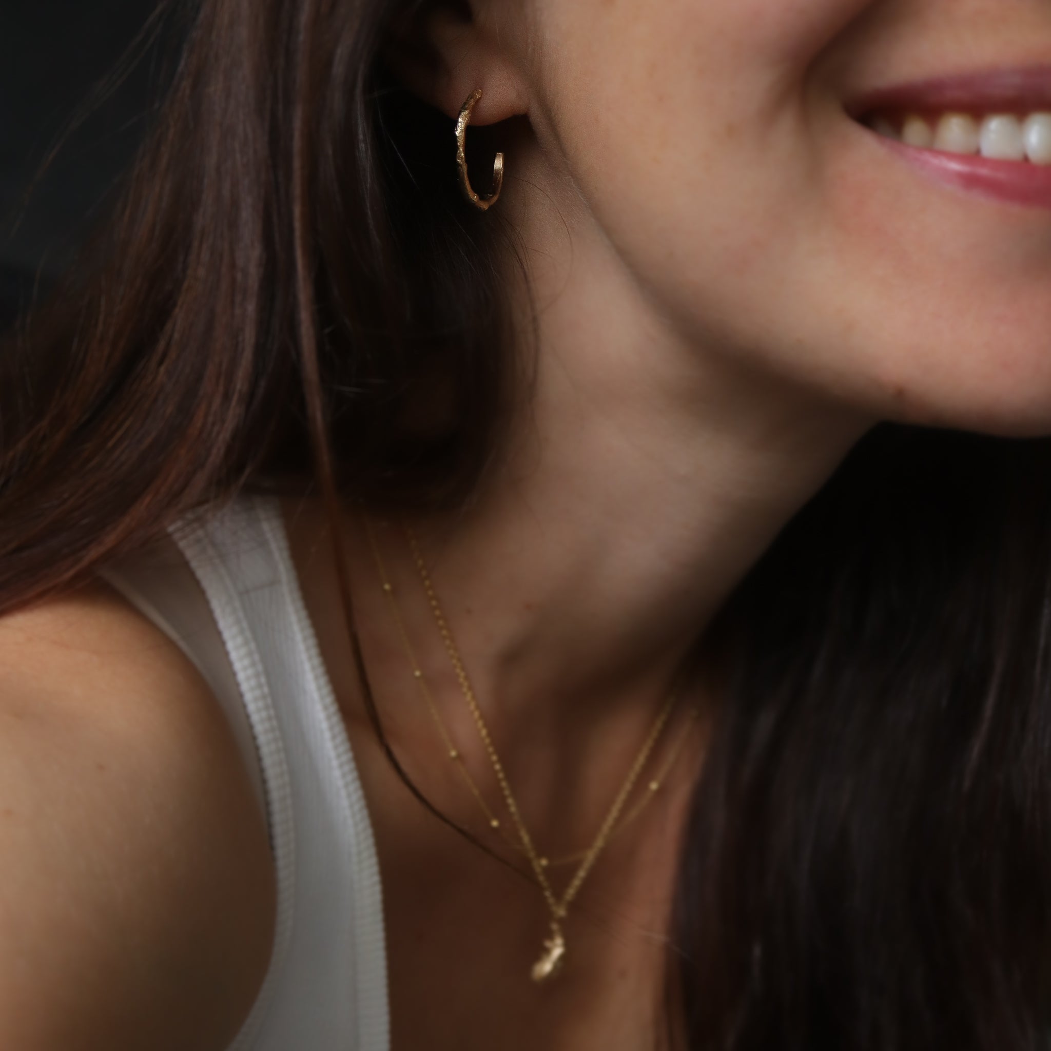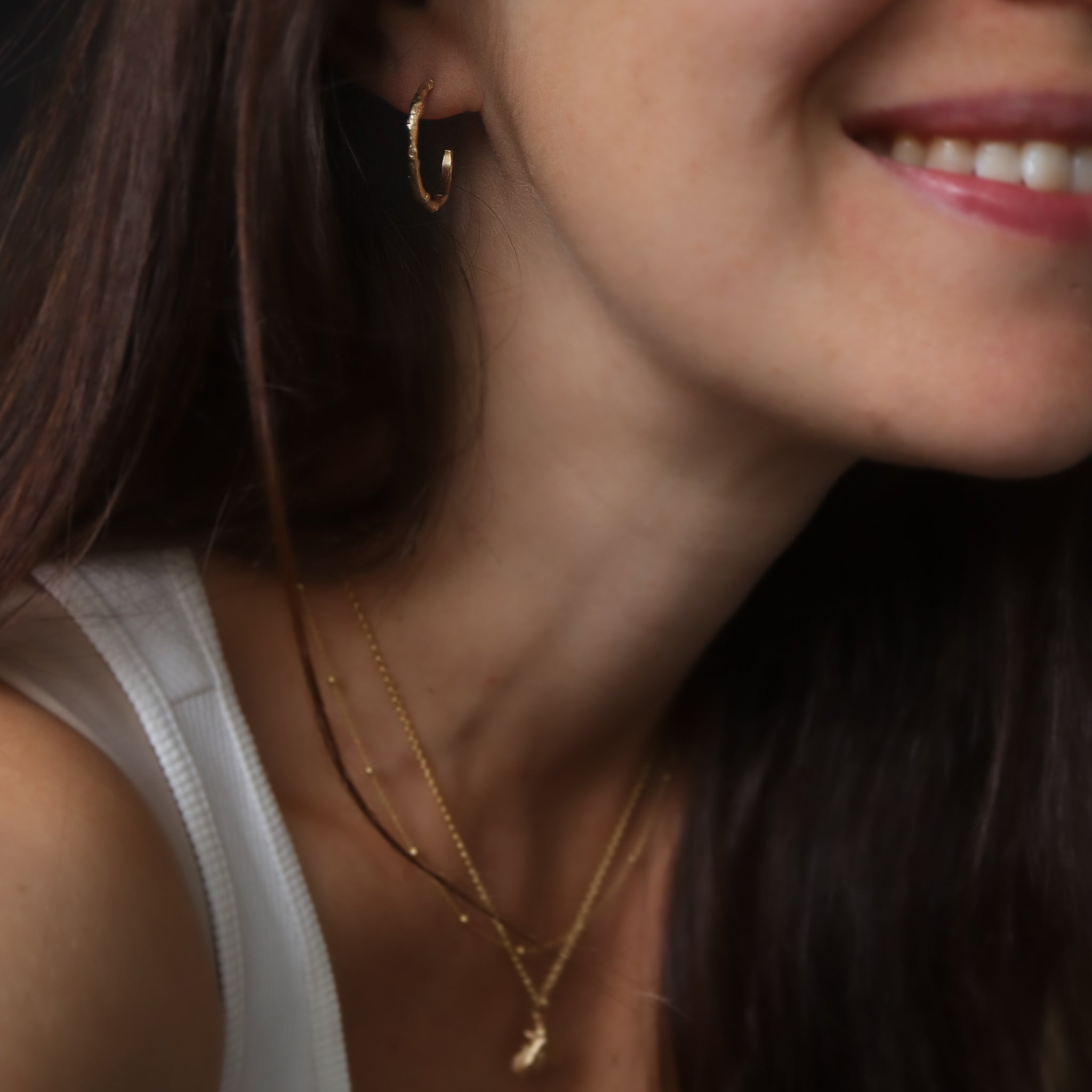 Diese Creolen werden mit traditionellen Goldschmiedetechniken und viel Liebe bis in das kleinste Detail aus hochwertigen Materialien gefertigt. Ich lege großen Wert auf Nachhaltigkeit und verwende ausschließlich recycelte Edelmetalle, die aus zertifizierten konfliktfreien Quellen stammen. So kannst du sicher gehen, dass dein Schmuckstück nicht nur wunderschön ist, sondern bei der Herstellung auch die Natur respektiert wird. Mehr dazu findest du hier.