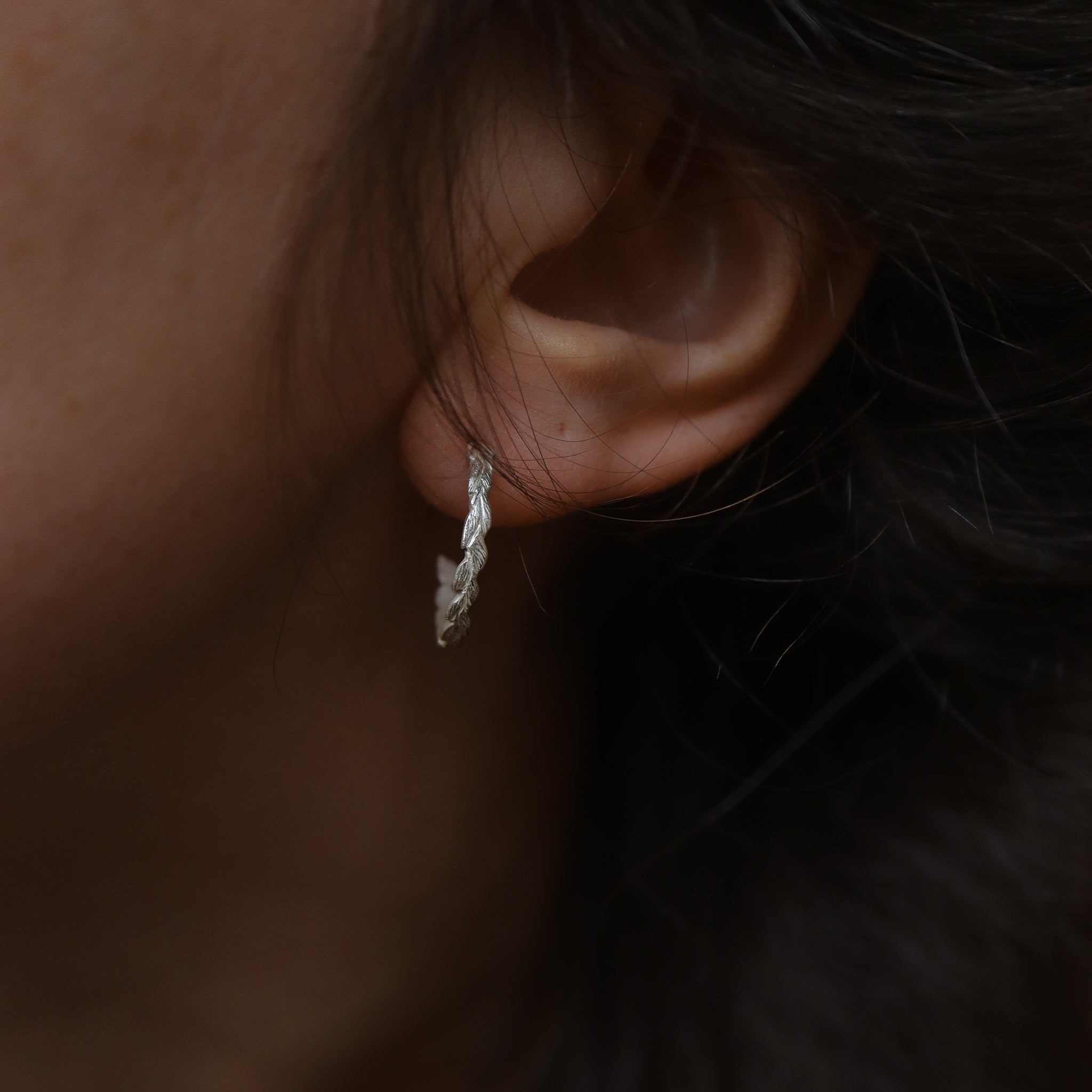 Diese Creolen sind von Daphne inspiriert, jener starken Frau der griechischen Mythologie, die sich in einen Lorbeerbaum verwandelt, um der unheilvollen Liebe Apollons zu entfliehen. Sie stellen einen Kranz, geflochten aus immergrünen Lorbeerblättern dar.